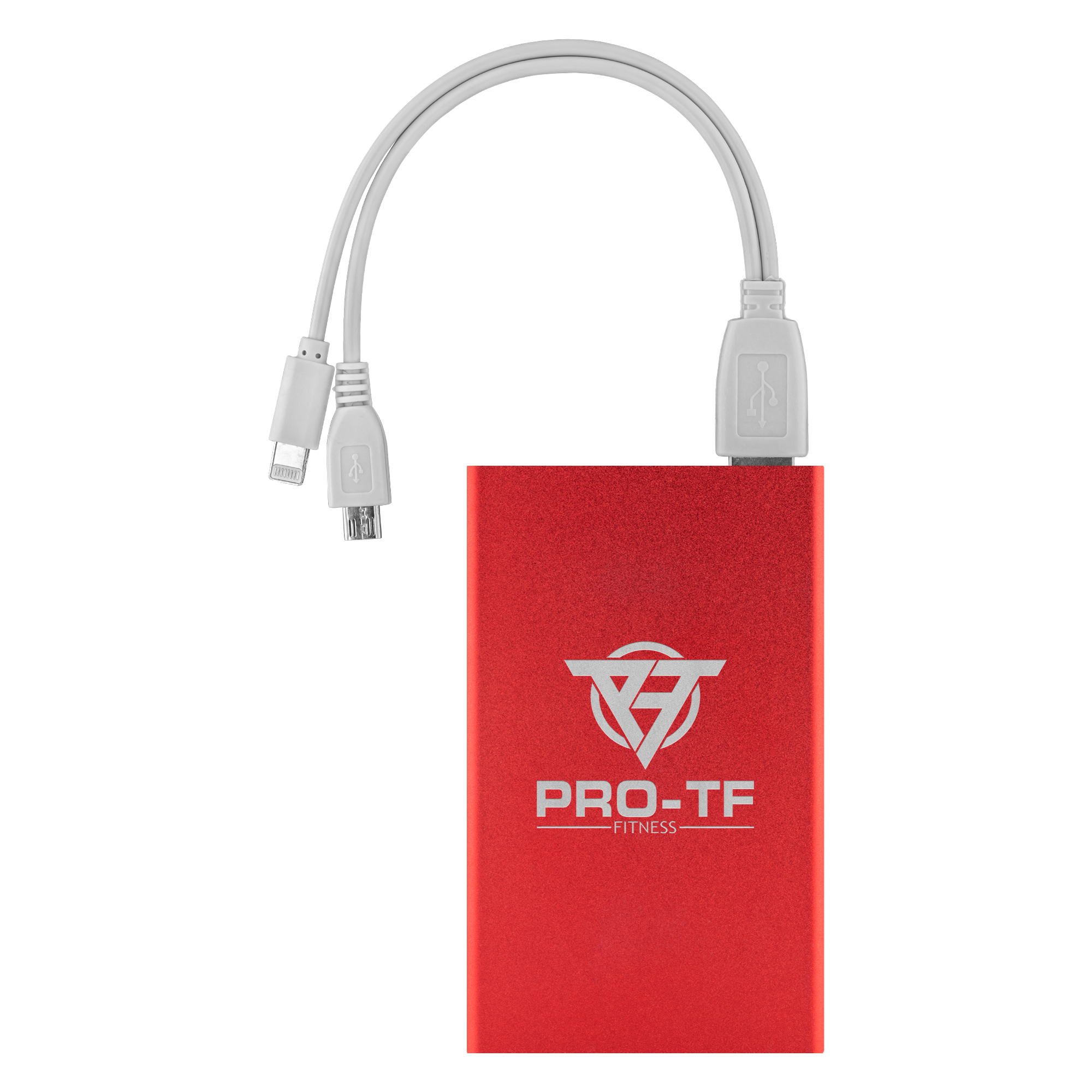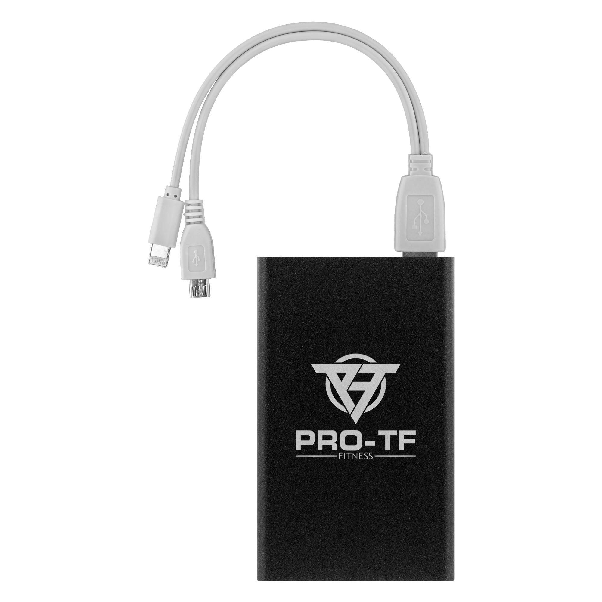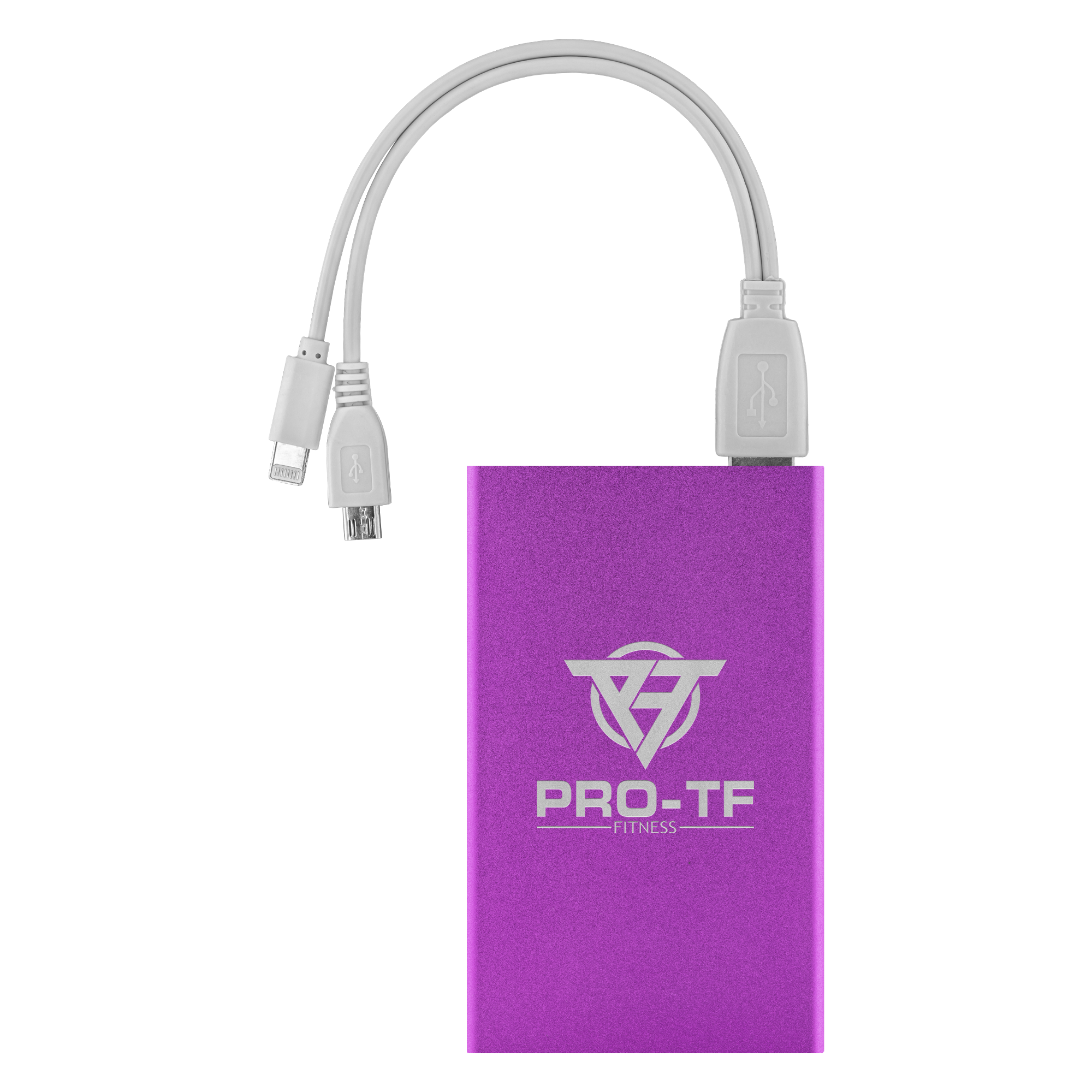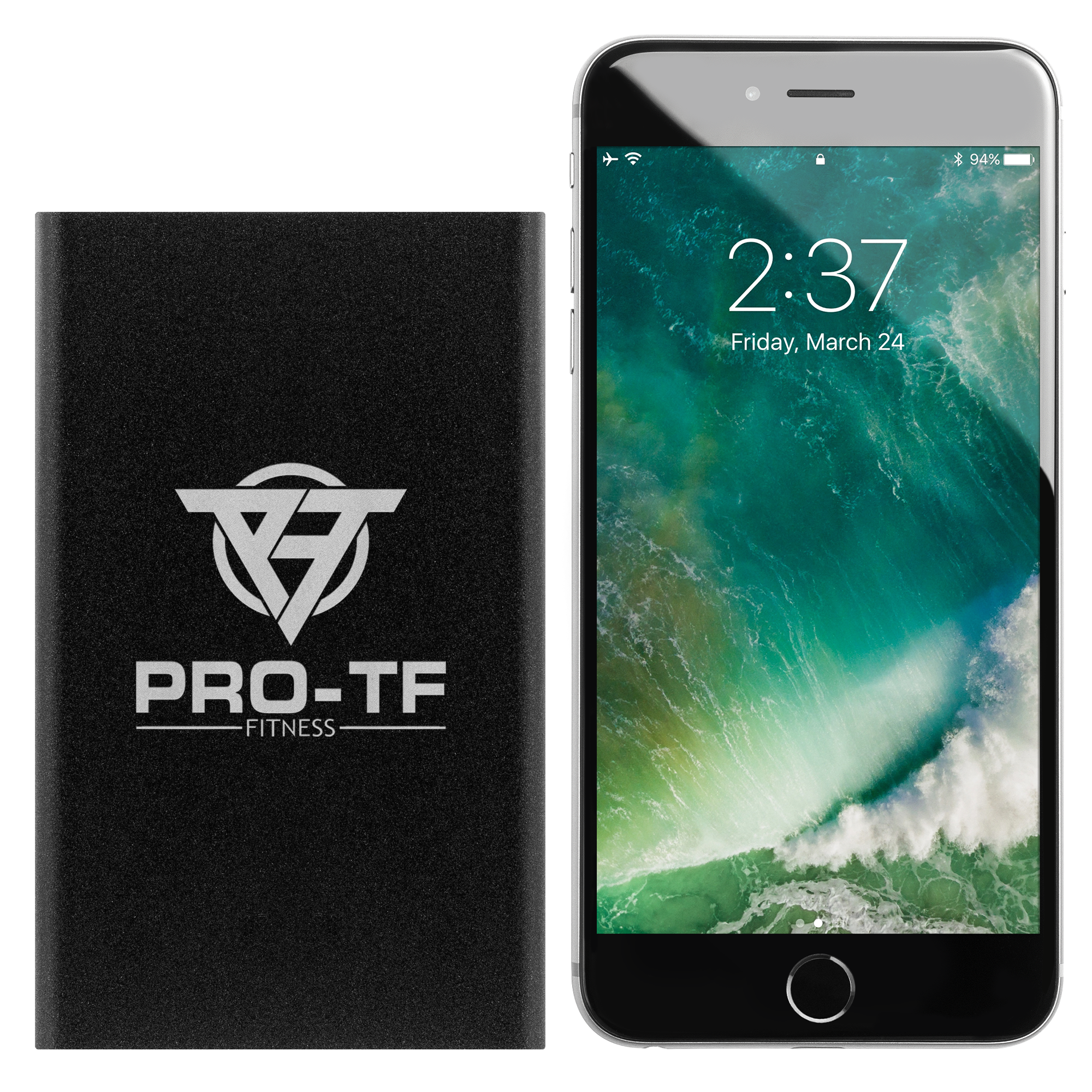 Stay charged up when you’re on the go with a sleek and stylish Pro-TF Fitness Power Bank. These power banks are small enough to fit in your pocket, yet powerful enough to add hours of juice to your mobile device. The 4000mAh power cell can fully charge any iPhone or Android phone and then some!
