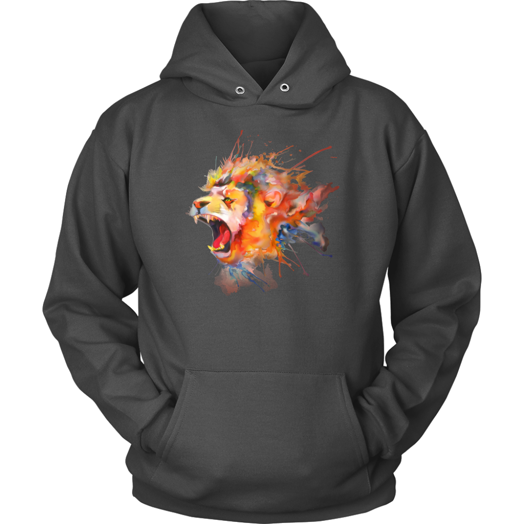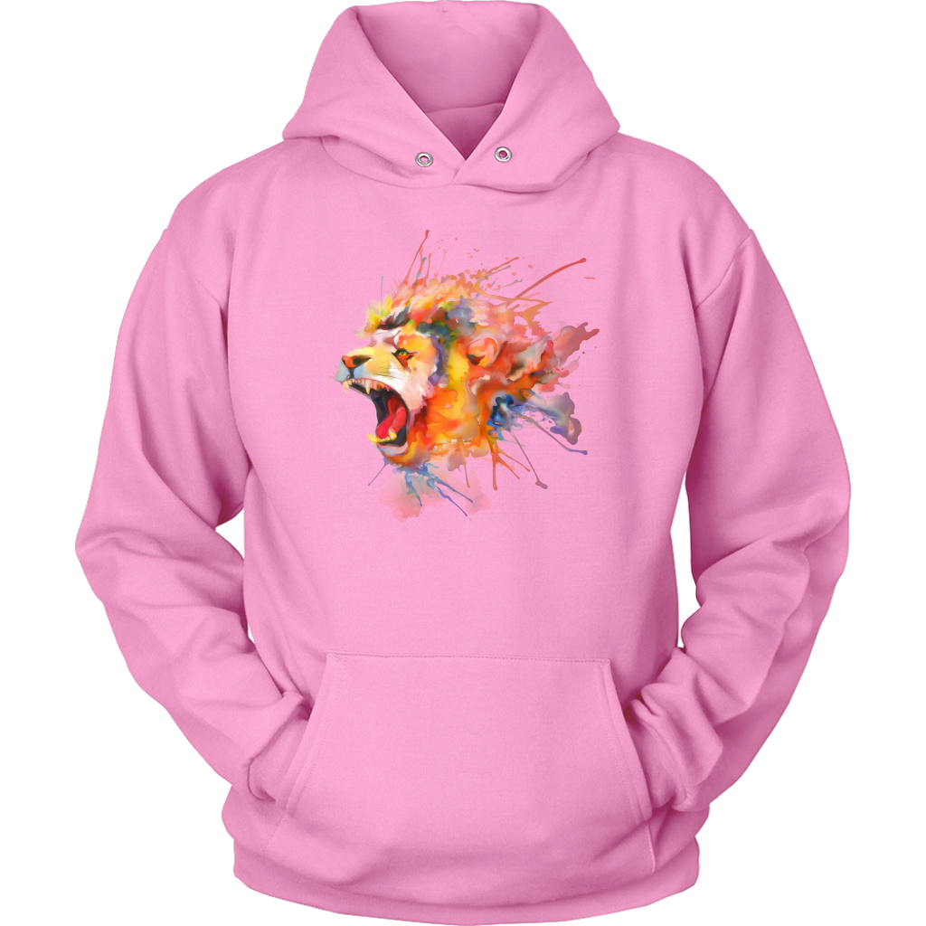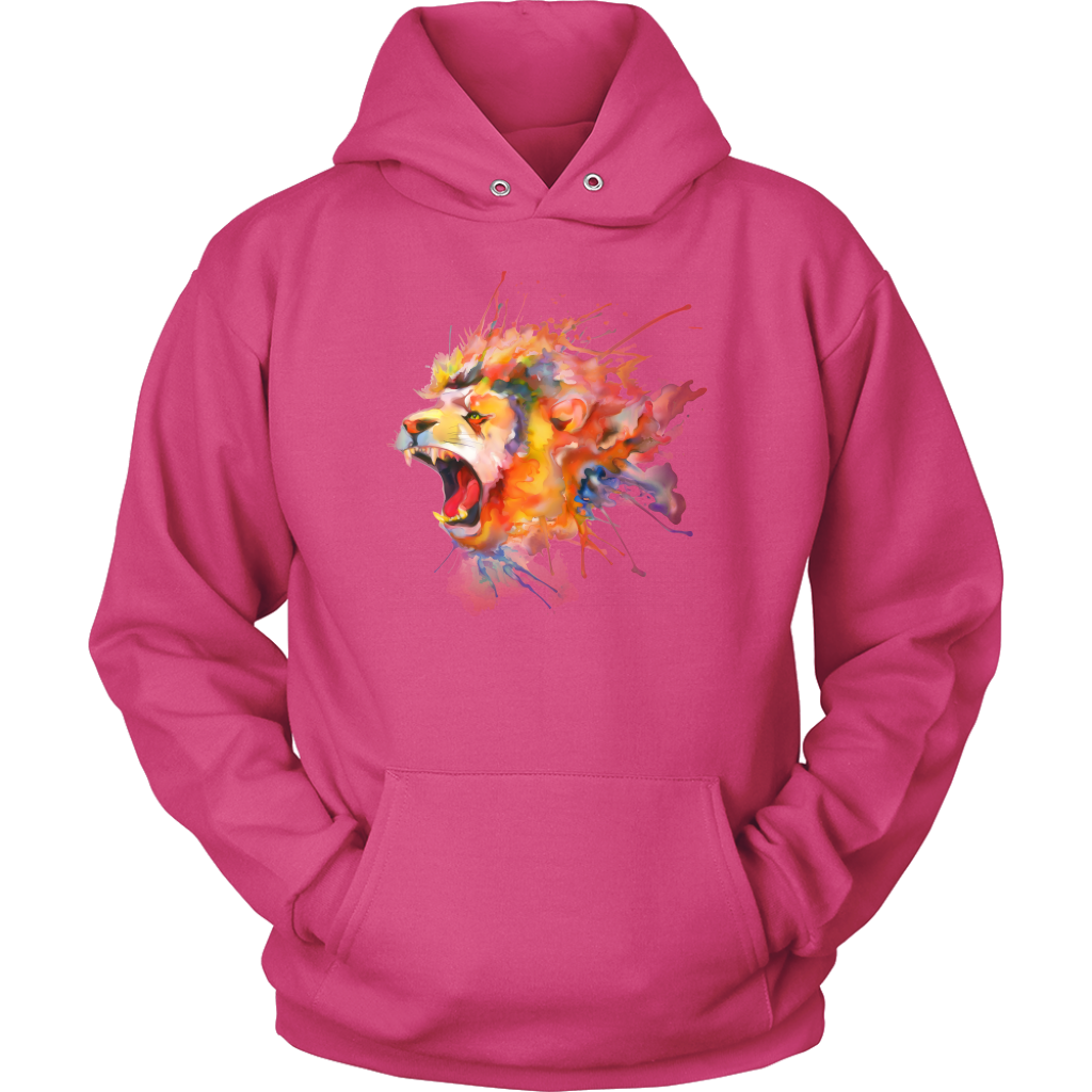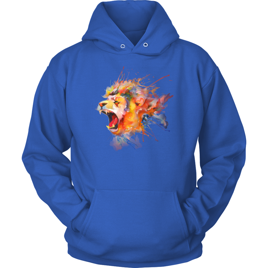 From the same artist that brought us the watercolor donut and chocolate comes now the Roaring Lion watercolor design on a Hoodie.