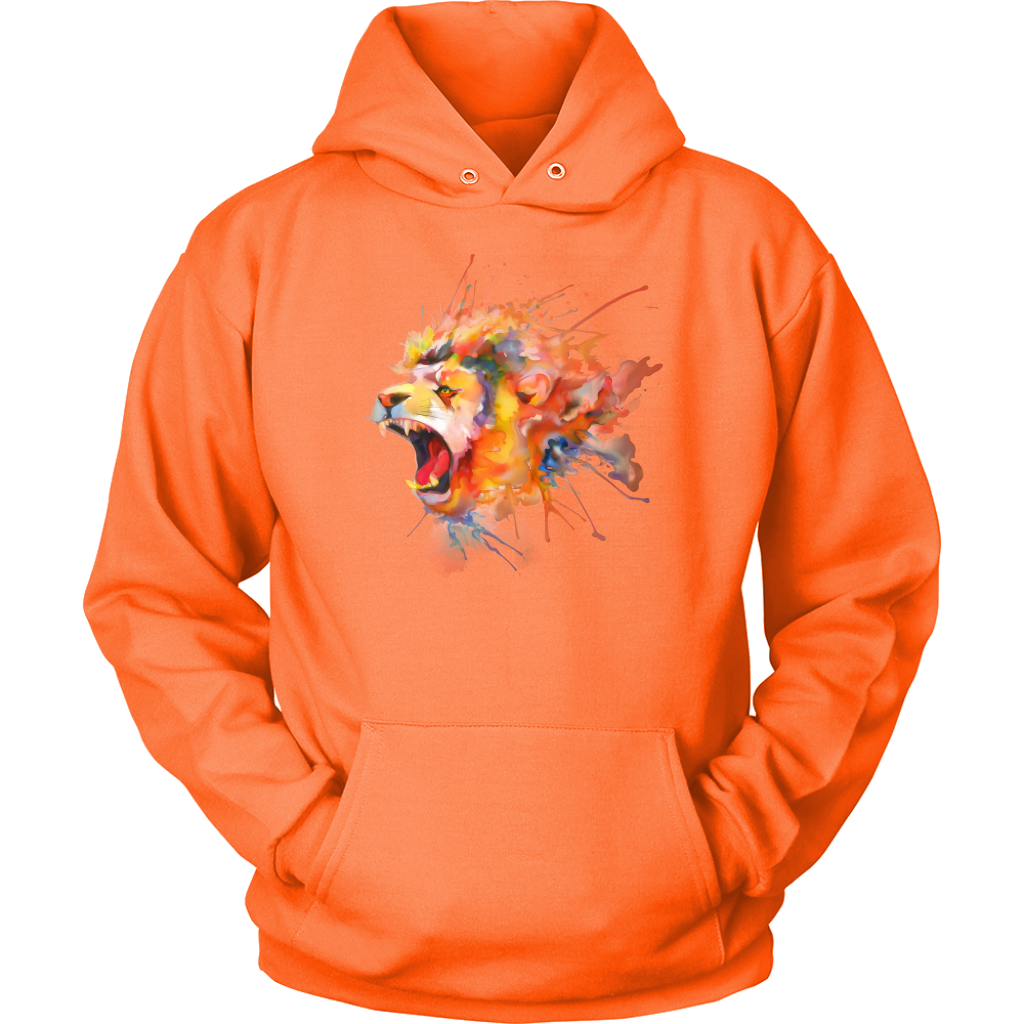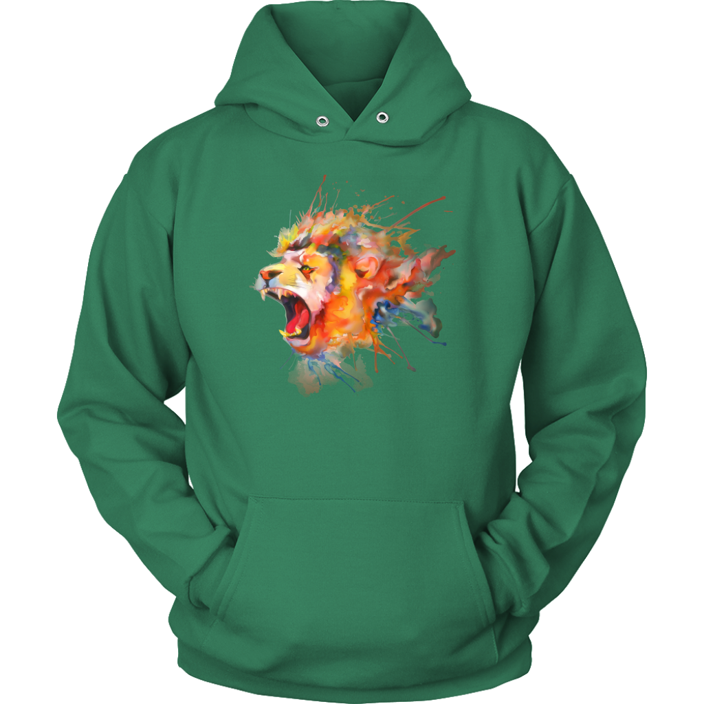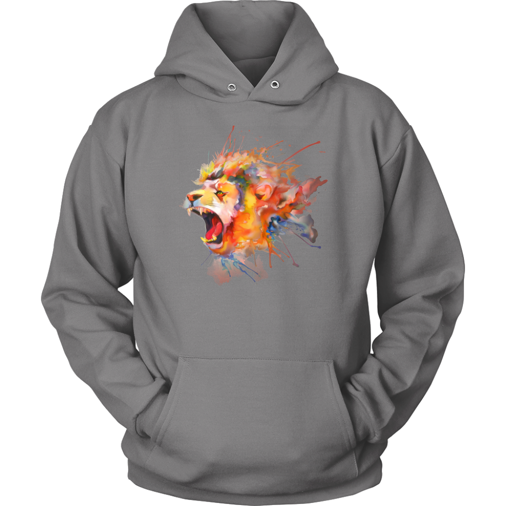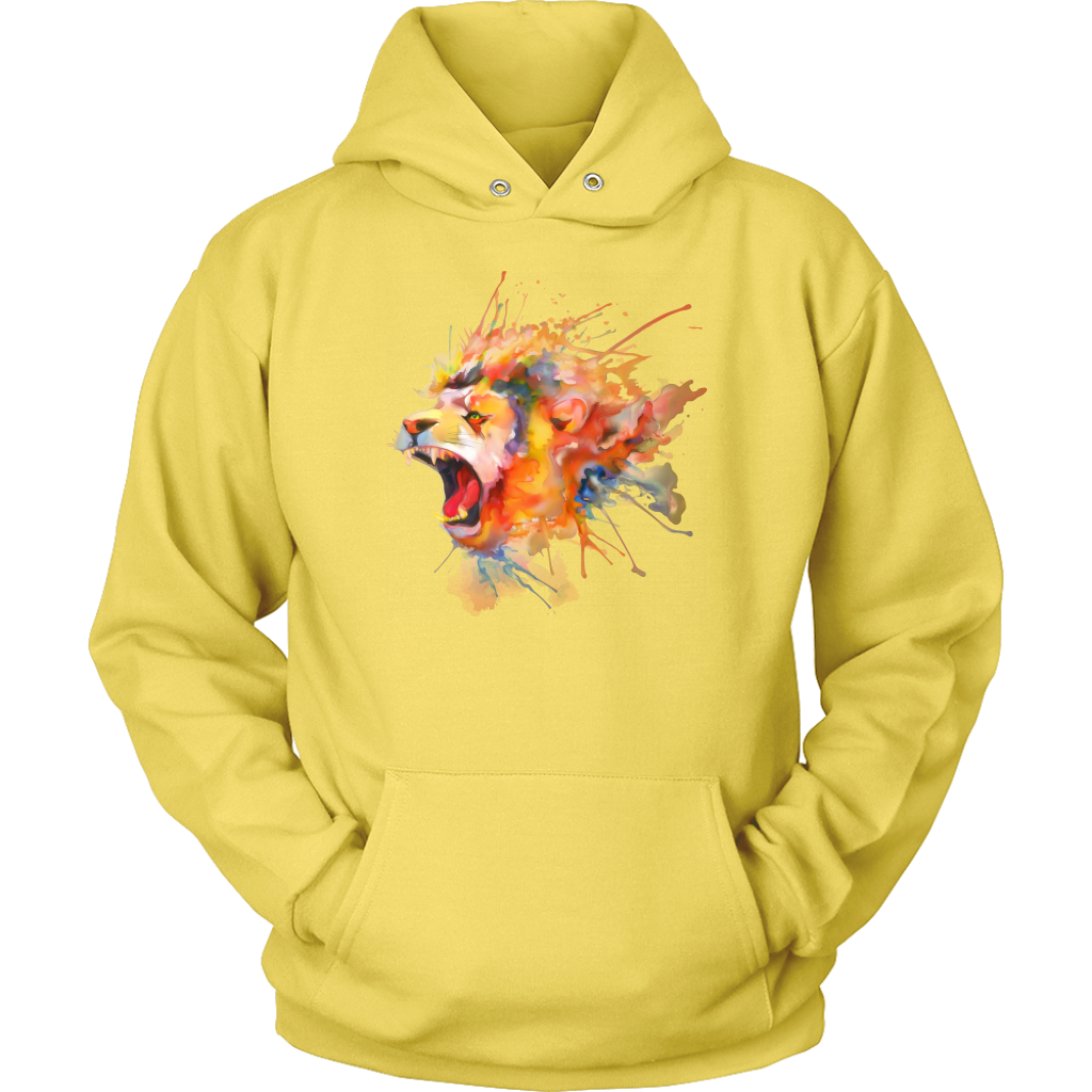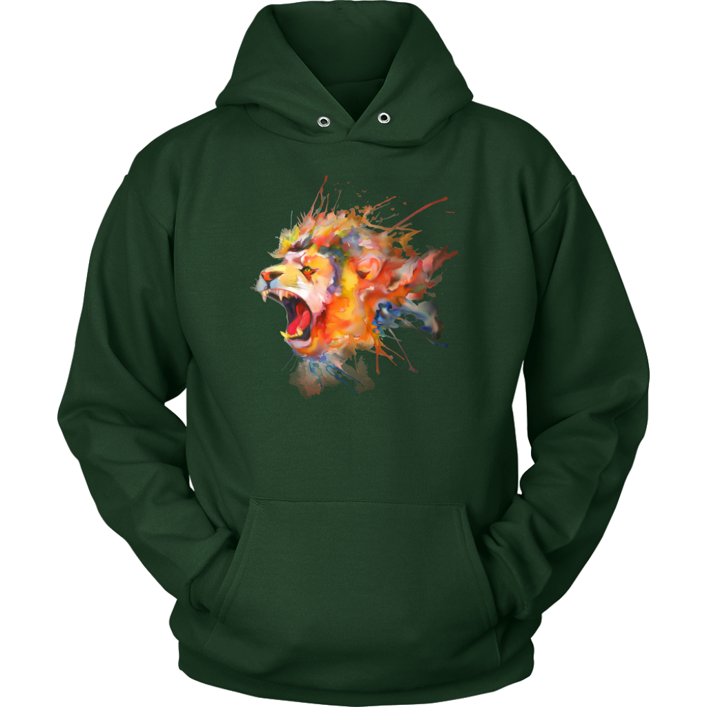 From the same artist that brought us the watercolor donut and chocolate comes now the Roaring Lion watercolor design on a Hoodie.